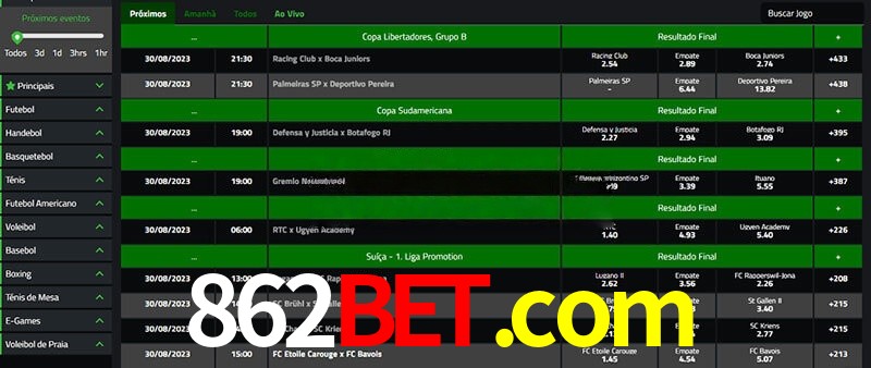 As apostas esportivas da 862bet são a melhor maneira de apostar nos seus esportes favoritos, seja ao vivo ou antes do jogo. Com uma enorme seleção de promoções e oportunidades de ganhar muito, nossa plataforma o manterá entretido por horas e horas! Você nunca ficará sem coisas divertidas para fazer na 862bet, porque sabemos como tratar bem os nossos clientes!